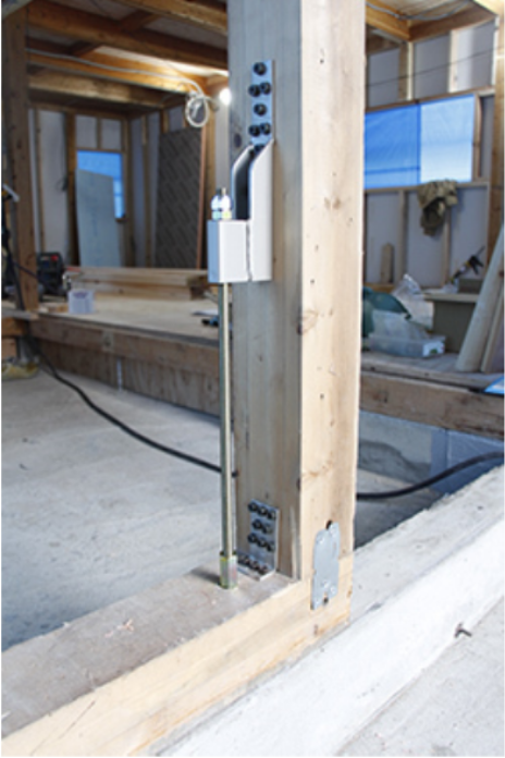 構造計算により耐震が弱いと算出された箇所には地震により大きな力が加わった時、既存の骨組みから柱・梁が引き抜かれないようにHD20、HD25の金物を使用し、しっかりと補強を施しています。